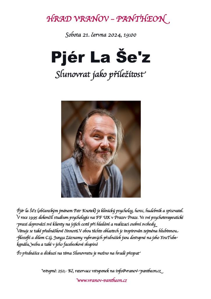Přednáška Petra Knotka, klinického psychologa, herce, hudebníka a spisovatele na hradě Vranov.