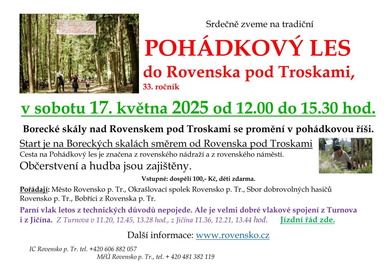 Strejda vodník, čerti ve sluji, baba jaga a další překvapení čeká děti i dospěláky na trase pohádkovým lesem. Děti obdrží pamětní list, se kterým budou putovat po všech pohádkových bytostech a hádat o jakou pohádku se jedná. Na konci putování je připraveno občerstvení, je možné si opéct buřtíky, poslechnout místní kapelu a dostat razítko v místní poštovně.